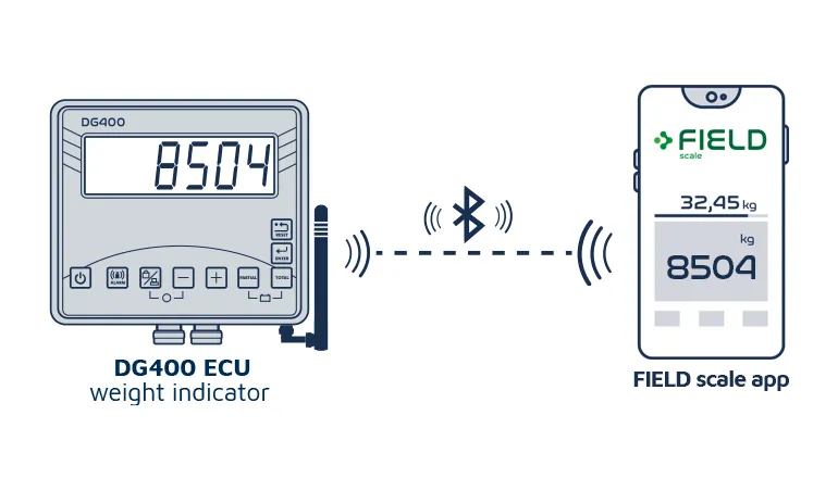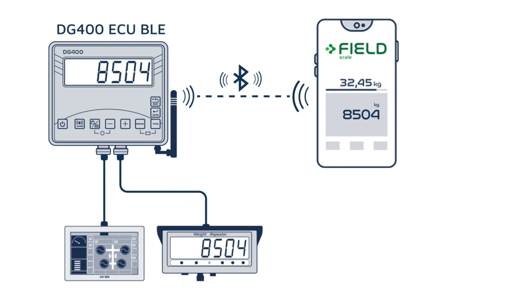 FIELD scale connects wirelessly to the DG400 ECU, allowing operators to record harvest weight, date, and time for every load.